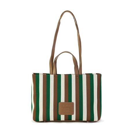 ストライプ柄が目を引く、カジュアルで使いやすい2wayトートバッグ。