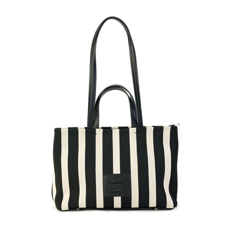 ストライプ柄が目を引く、カジュアルで使いやすい2wayトートバッグ。