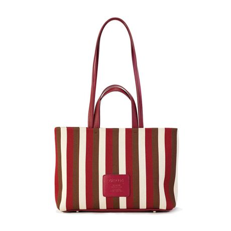 ストライプ柄が目を引く、カジュアルで使いやすい2wayトートバッグ。