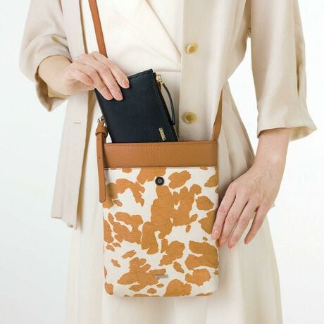 長財布がすっぽり収まる人気の牛革ポシェットに、アニマル柄が仲間入りしました。