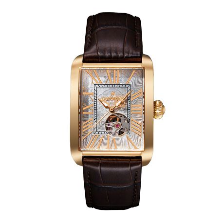 円形(ラウンド)よりも知的でクラシックな印象を与える長方形ケースを採用。手首に沿うよう緩やかにカーブした形状が、抜群のフィット感と高級感をもたらします。