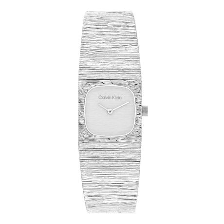 文字盤はロゴと針のみ。あえて余白を広く持たせることで、バングルの複雑な質感とのコントラストを生み出し、CalvinKleinらしいモダンな静寂を表現しています。