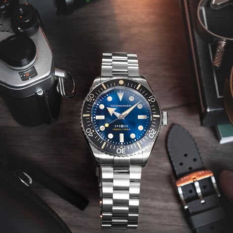 スピニカーの核心的価値、「海を越え、海と生きる」。その実現に欠かせない防水設計技術と、日常的に使用するための実用性を高次元で両立させたのが、「スペンス300 オートマティック」です。