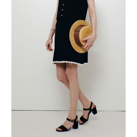 ノースリーブで好評だったPO。新たに編地をミラノリブに変えミニSKを作りました。ウエストはゴム入りですがコンシールファスナー開きなのでトップスインも綺麗見えします。CDとセットアップで着用可能。