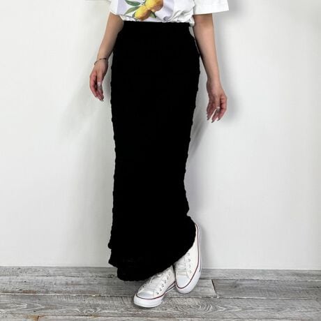 後ろにはスリットが入っており、長めの丈ながらも足さばきの良いアイテムです。
