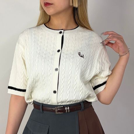 バイカラーレイヤード半袖カーディガン