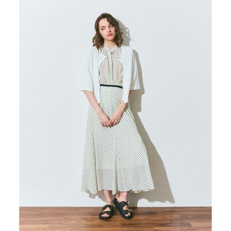 ほどよい肉感ときれいなドレープ感のあるレーヨン素材のグランドに、ハート柄にも見えるドット柄を織り込んだカットジャガード地のきれいなシルエットのスカート。