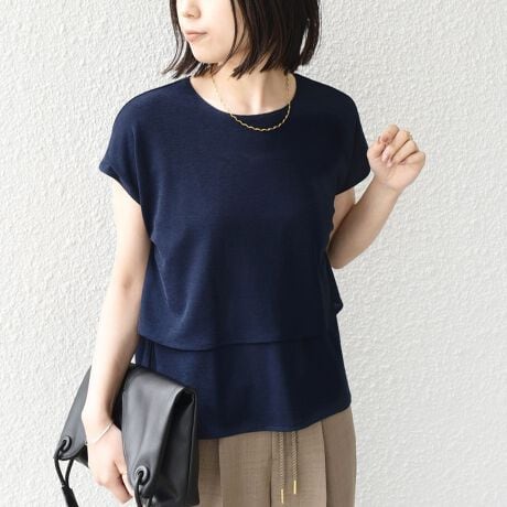 リネンのような表情のカットソー素材が、上品さと軽やかさを演出します。