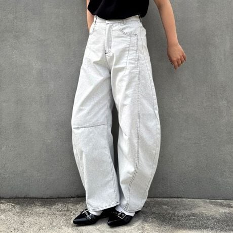 ウエストからミドルヒップまでのシルエットがすっきりしており、ウエスト周りが細見えするパンツです。