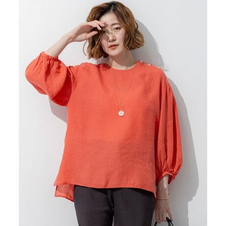 洗練されたリネンの風合い。一枚で着映える大人のボリュームスリーブブラウス