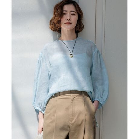 洗練されたリネンの風合い。一枚で着映える大人のボリュームスリーブブラウス