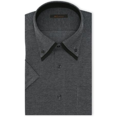 夏場のクールビズに大活躍してくれる、半袖のビズシャツです。表面感のあるドビーの織り柄、配色のダブルネック、衿足内側の別生地(黒無地)切り替えがポイント。衿型はアンタイド(ノーネクタイ)でも衿立ちよく収まり、オフィスカジュアルにもぴったりなボタンダウンを採用しています。
