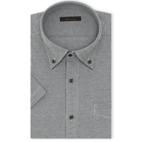 夏場のクールビズに大活躍してくれる、半袖のビズシャツです。表面感のあるドビーの織り柄(千鳥子格子)、衿先のパイピング、下前立てのデザインテープがポイント。衿型はアンタイド(ノーネクタイ)でも衿立ちよく収まり、オフィスカジュアルにもぴったりなボタンダウンを採用しています。