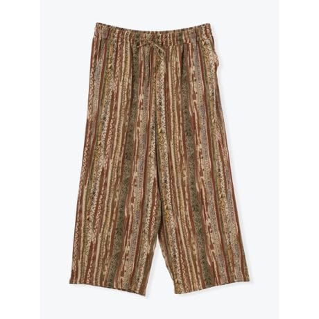 スタイリングのアクセントに映えるアソート柄プリーツパンツ