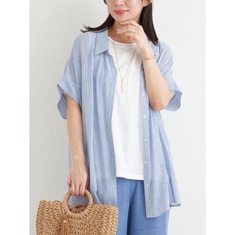 滑らかなタッチのストライプ柄シアーシャツと着回しやすいタンクトップのSET