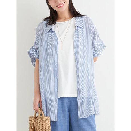 滑らかなタッチのストライプ柄シアーシャツと着回しやすいタンクトップのSET
