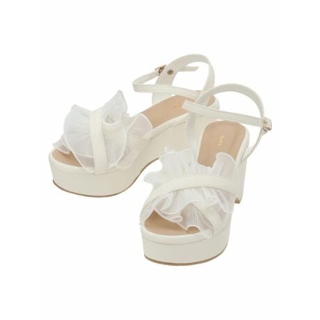 ひらりとしたプリーツフリルが大人のエレガントさを演出するサンダル。