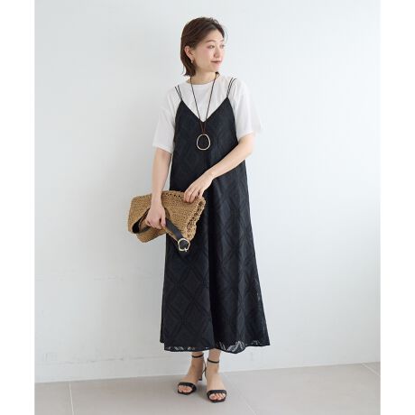 繊細なレースをパッチワーク風に仕上げた、表情豊かなキャミワンピース。