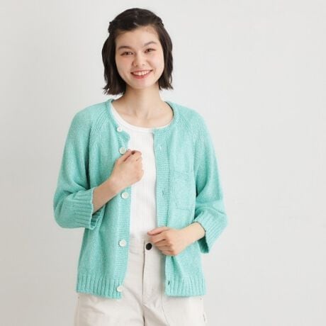 軽やかでさらりとした着心地に仕上げた、日本製の無縫製七分袖カーディガンです。