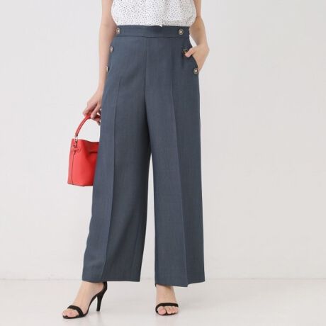 マリン調釦がポイントのマリンパンツ。太すぎないストレートワイドシルエットです。