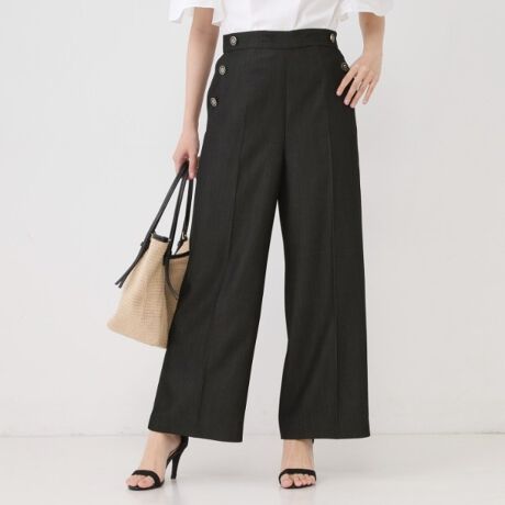 マリン調釦がポイントのマリンパンツ。太すぎないストレートワイドシルエットです。