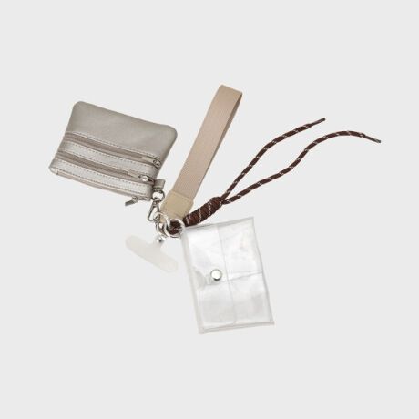 クリアと合皮の2つのポーチが付いたBAGストラップ。