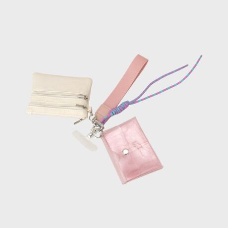 クリアと合皮の2つのポーチが付いたBAGストラップ。