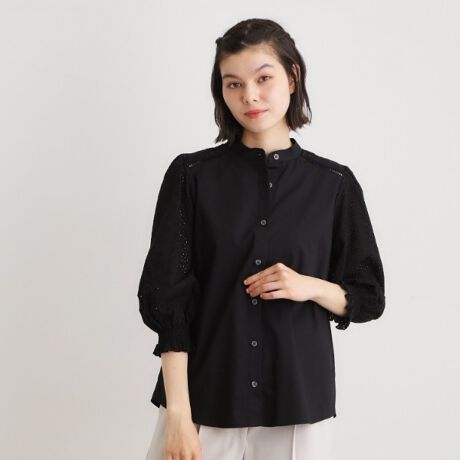 袖口にはシャーリングを施し、大きすぎないボリューム感がありながらも上品な印象です。