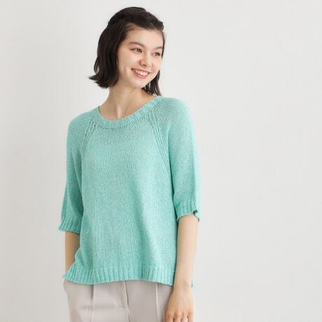 [型番:N9981477]麻のような風合いと上品なシャリ感が魅力の、ギマコットンヤーンを使用。軽やかでさらりとした着心地に仕上げた、日本製の無縫製五分袖プルオーバー。縫い目のない美しいシルエットと、少し短めの丈が軽やかに着ていただける1枚です。※照明の関係により、実際よりも色味が違って見える場合があります。また、パソコン・スマートフォンなどの環境により、若干製品と画像のカラーが異なる場合もございます。