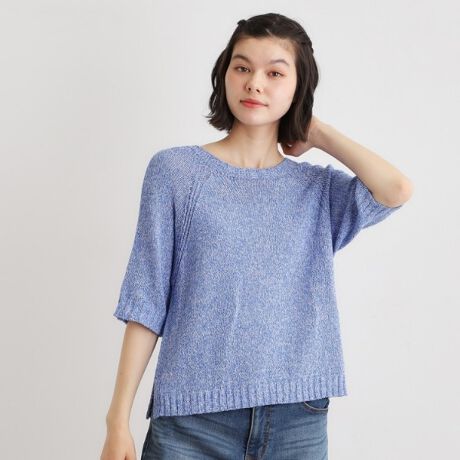 [型番:N9981477]麻のような風合いと上品なシャリ感が魅力の、ギマコットンヤーンを使用。軽やかでさらりとした着心地に仕上げた、日本製の無縫製五分袖プルオーバー。縫い目のない美しいシルエットと、少し短めの丈が軽やかに着ていただける1枚です。※照明の関係により、実際よりも色味が違って見える場合があります。また、パソコン・スマートフォンなどの環境により、若干製品と画像のカラーが異なる場合もございます。