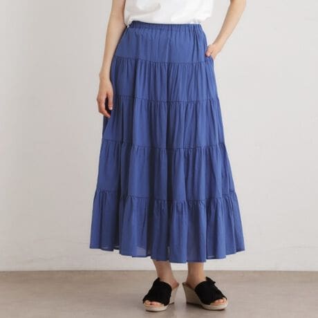 段々に切り替えたティアードデザインが特徴的なマキシ丈スカートです。