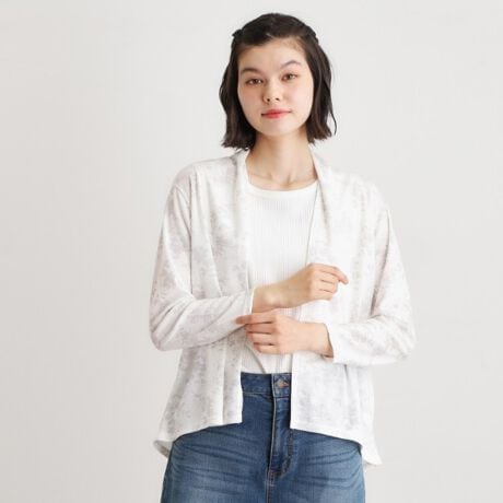 ノーボタンの仕様がリラックス感を演出し、羽織るだけで軽やかな印象に。