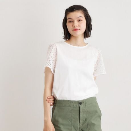マルイウェブチャネル   /   ローラ アシュレイ   /   トップス   /   Tシャツ・カットソー   /   【洗える/コットン100%/日本製】レーススリーブカットソー