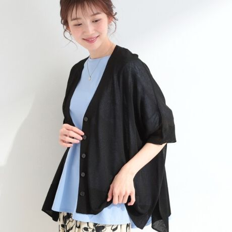 体型カバーも叶うポンチョ型のラメカーディガン。