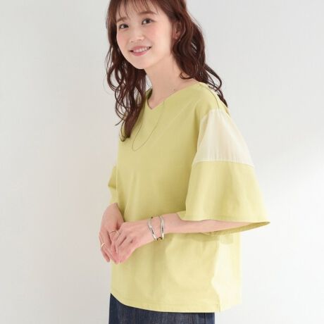 【SHOO ICE】1枚でサマになる 袖異素材フレアスリーブTシャツ