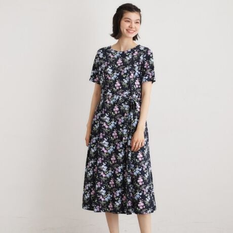 繊細なボタニカルフラワープリントが魅力のワンピースです。