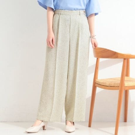 表情のあるツイード調素材がポイントのワイドパンツ。