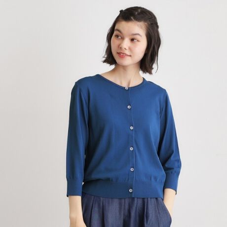 コンパクトなサイズ感できれいめな印象に仕上げたクルーネックカーディガンです。