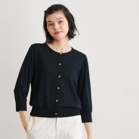 コンパクトなサイズ感できれいめな印象に仕上げたクルーネックカーディガンです。