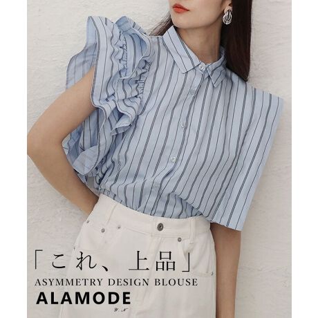 マルイウェブチャネル   /   サワアラモード   /   トップス   /   ブラウス   /   【ブラウス】 レディース トップス シャツ ストライプ柄 アシメデザイン ゆったり フリル袖 春 夏