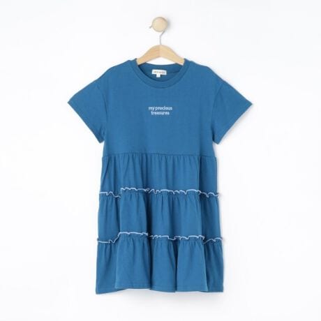 胸の刺繍と配色メロウがポイントになったティアードワンピース。