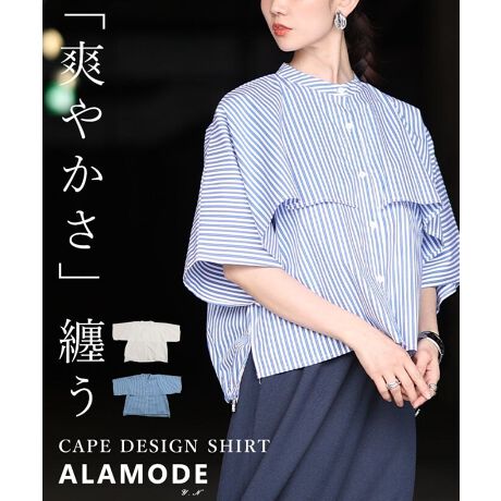 ケープデザインが目を惹くブラウス。ひらりと広がるシルエットが上品な華やかさを演出し、さらっと着るだけでこなれた印象に。オンにもオフにも使いやすい一枚です。※カラーによって生地の質感が異なります