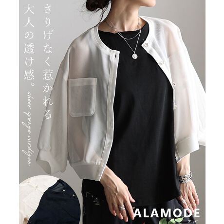 シアーな透け感が軽やかなスポンジニットカーディガン。さらっとした着心地で、羽織るだけでコーデに抜け感をプラスします。季節の変わり目にも活躍する、頼れる一枚です☆