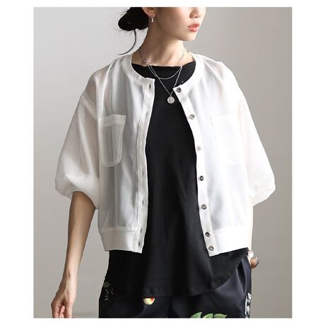 マルイウェブチャネル   /   サワアラモード   /   トップス   /   カーディガン   /   【トップス】 カーディガン メッシュ シアー ニット ボリューム袖 半袖 羽織り ネイビー ホワイト