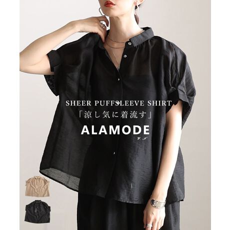 軽やかな透け感が魅力のフレンチスリーブシアーブラウス。さらっと着るだけで抜け感のある大人スタイルに仕上がります。同生地のalwj-756076パンツと合わせれば、涼しげなセットアップコーデも楽しめる一枚です☆