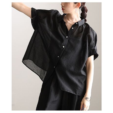 マルイウェブチャネル   /   サワアラモード   /   トップス   /   ブラウス   /   【トップス】 ブラウス シャツ シアー タック フレンチスリーブ 半袖 重ね着 ブラック ブラウン