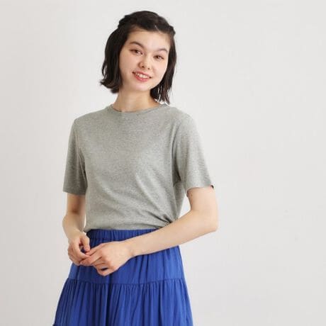 すっきりとしたシルエットで、インナーとしても一枚着としても活躍するデザインです。