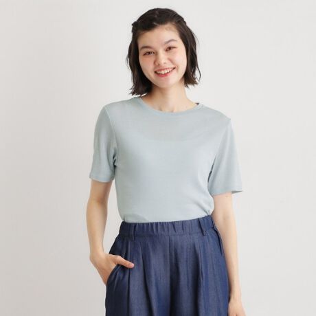 すっきりとしたシルエットで、インナーとしても一枚着としても活躍するデザインです。