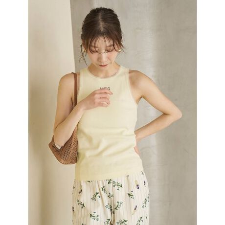 ストレッチ性のあるリブ素材とシアーメッシュが組み合わさり、女性らしさを引き立てるタンクトップ。