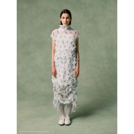 NYBGのフラワーをランダムな総柄で作成し、環境負荷を低減する水を使わないプリント技術が採用されたスカート。